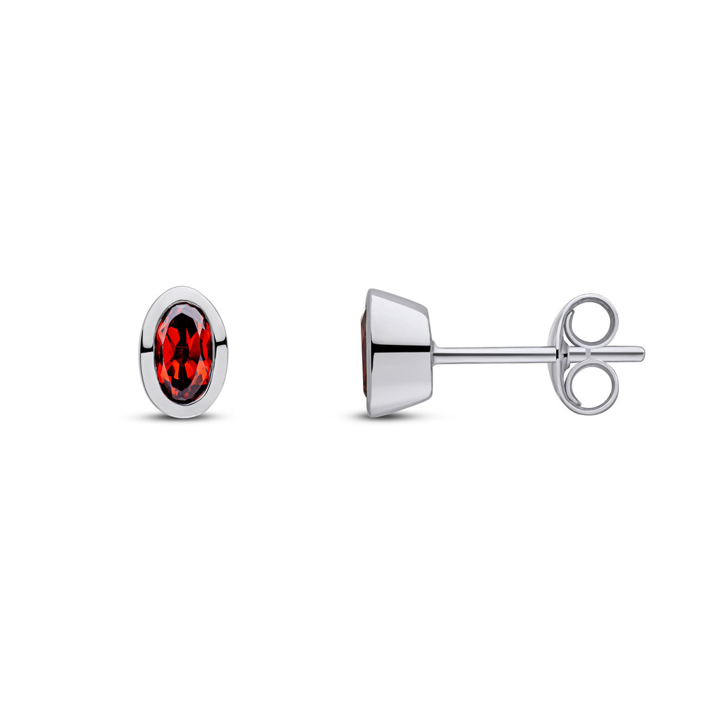 9CT White Gold Oval Garnet Rubover Stud Earrings 5x3mm
