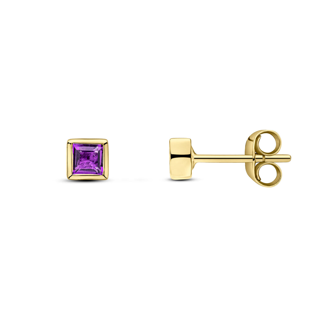 9CT Yellow Gold Square Amethyst Rubover Stud Earrings 3mm