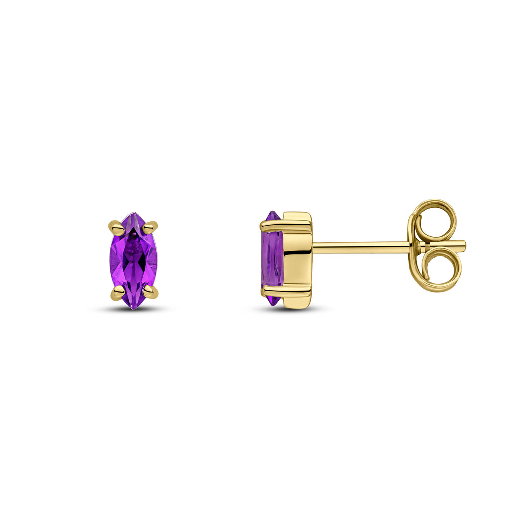 9CT Yellow Gold Marquise Amethyst Claw Stud Earrings 6x3mm