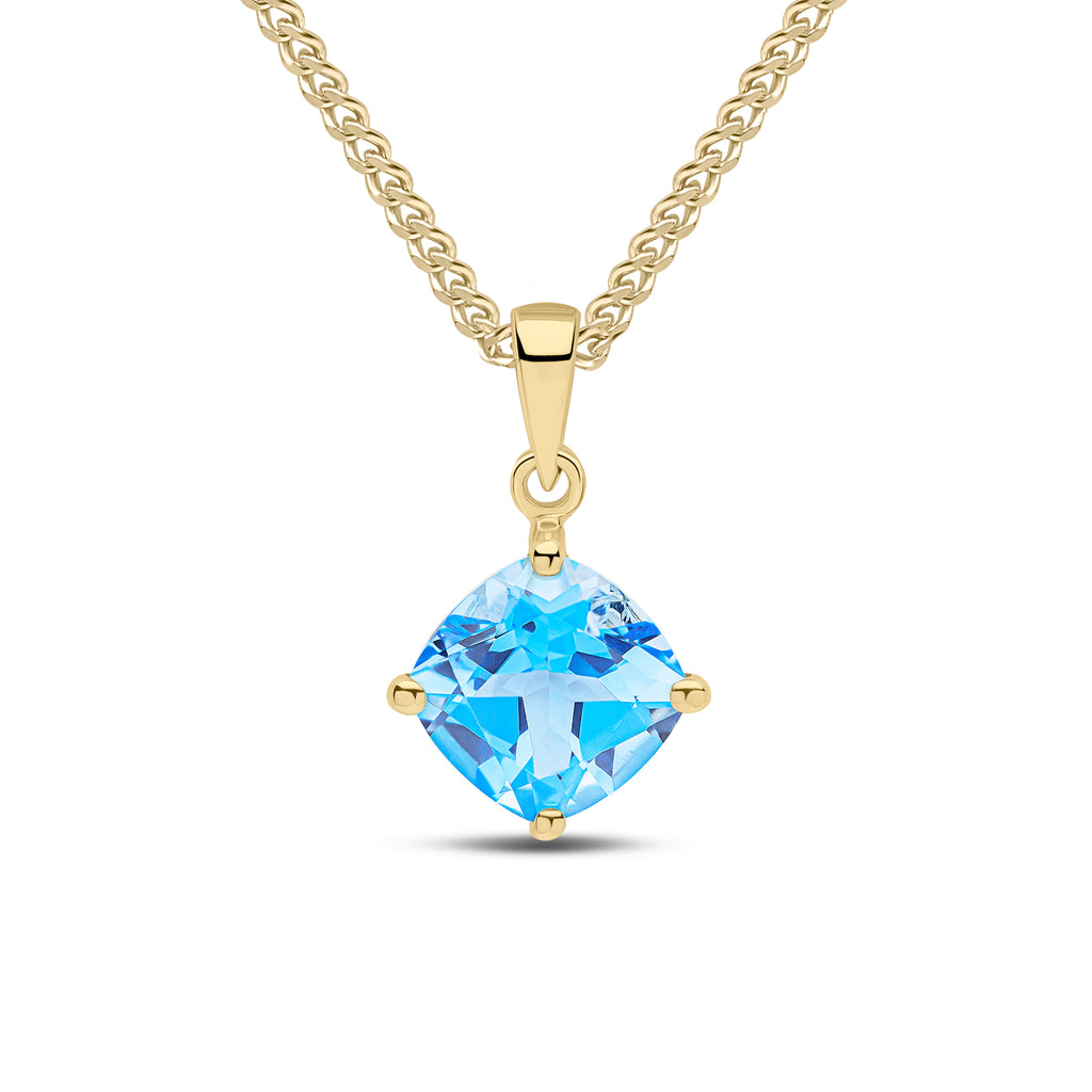 9CT Yellow Gold Cushion Swiss Blue Topaz Claw Pendant 8mm