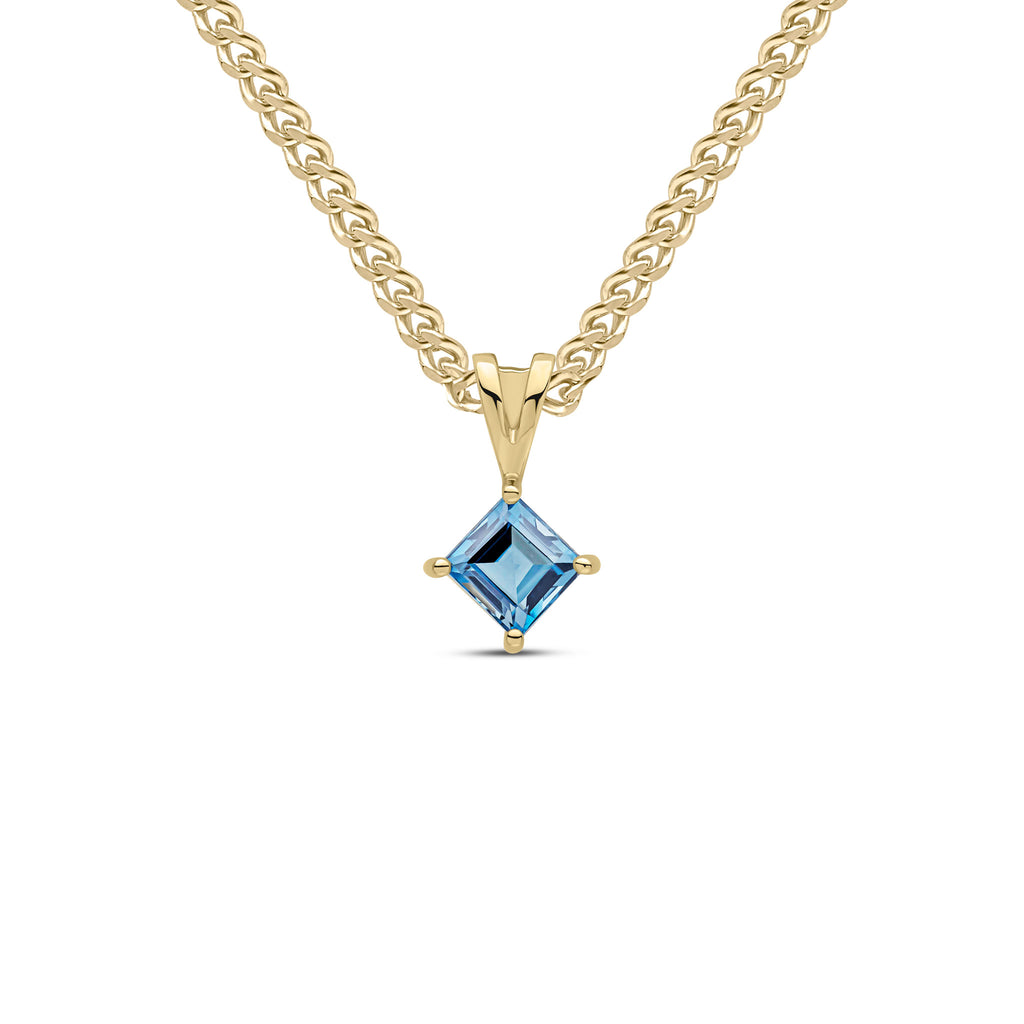 9CT Yellow Gold Square London Blue Topaz Claw Pendant 5mm