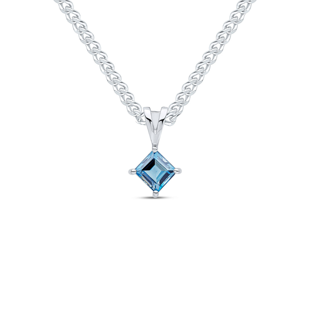 9CT White Gold Square London Blue Topaz Claw Pendant 5mm