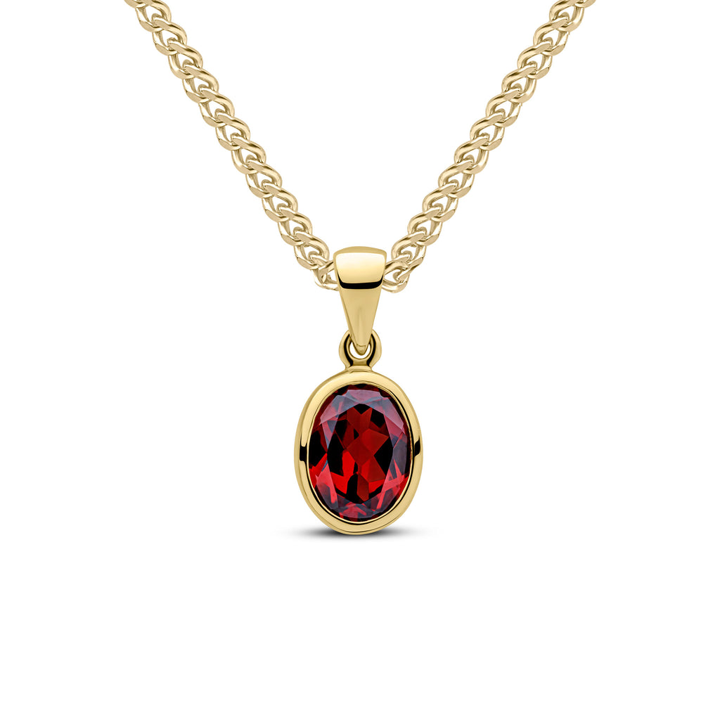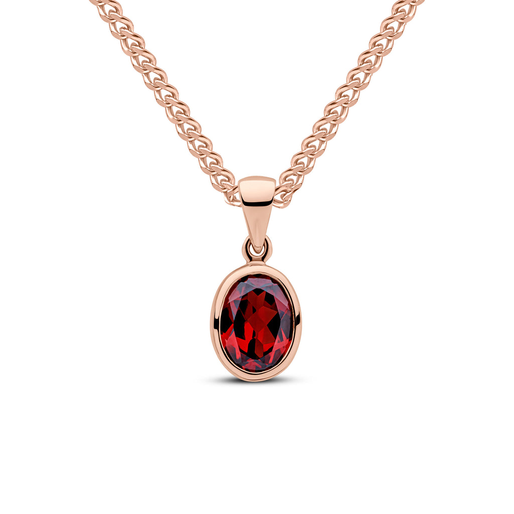 9CT Rose Gold Oval Garnet Rubover Pendant 8x6mm
