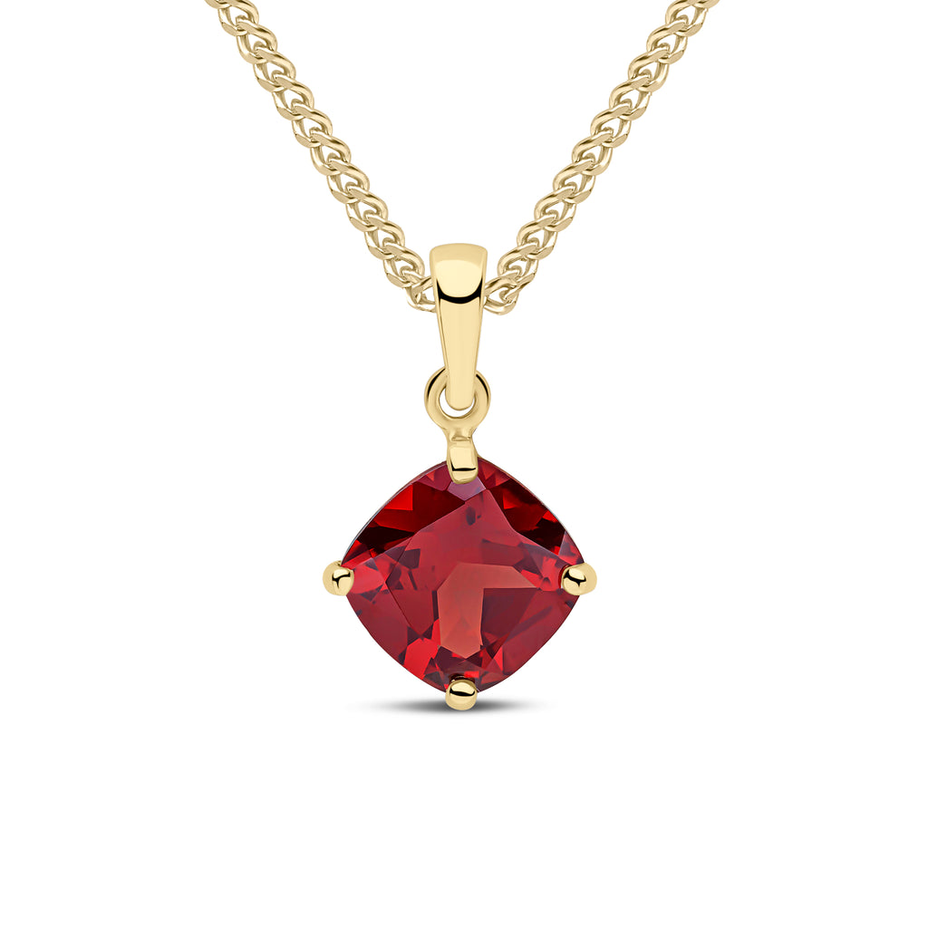 9CT Yellow Gold Cushion Garnet Claw Pendant 8mm