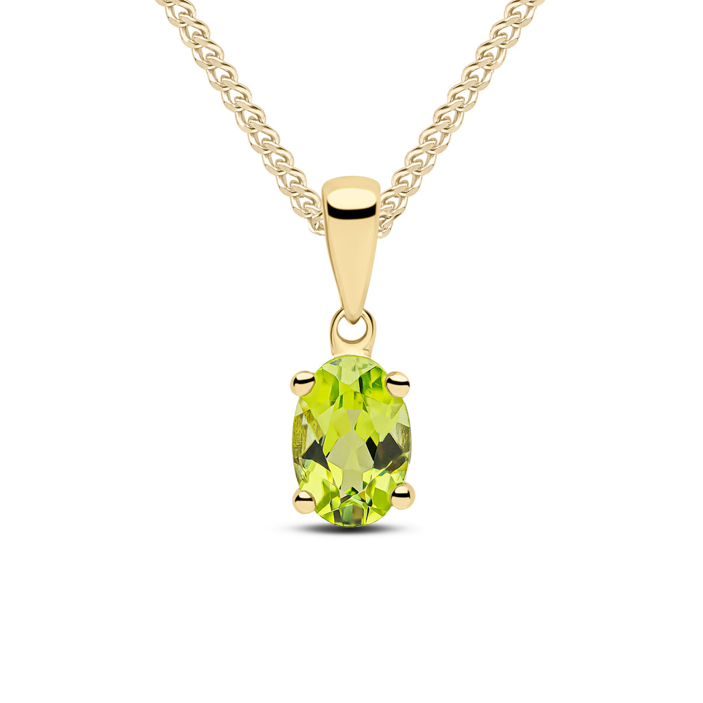 9CT Yellow Gold Oval Peridot Claw Pendant 6x4mm
