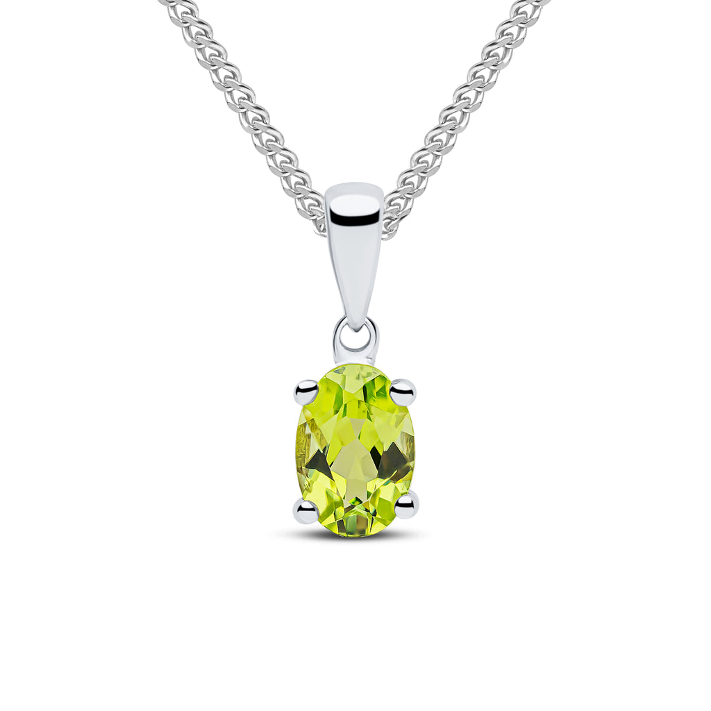 9CT White Gold Oval Peridot Claw Pendant 6x4mm