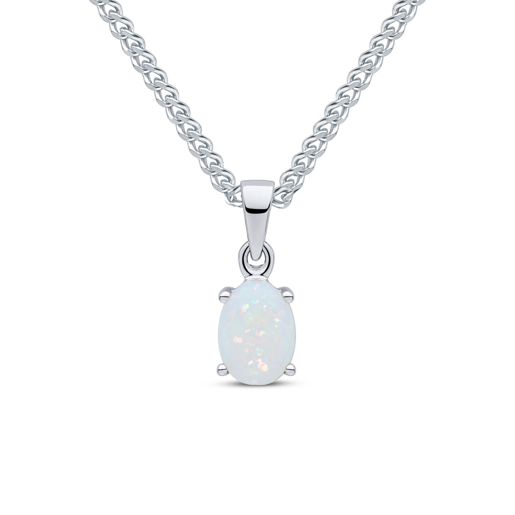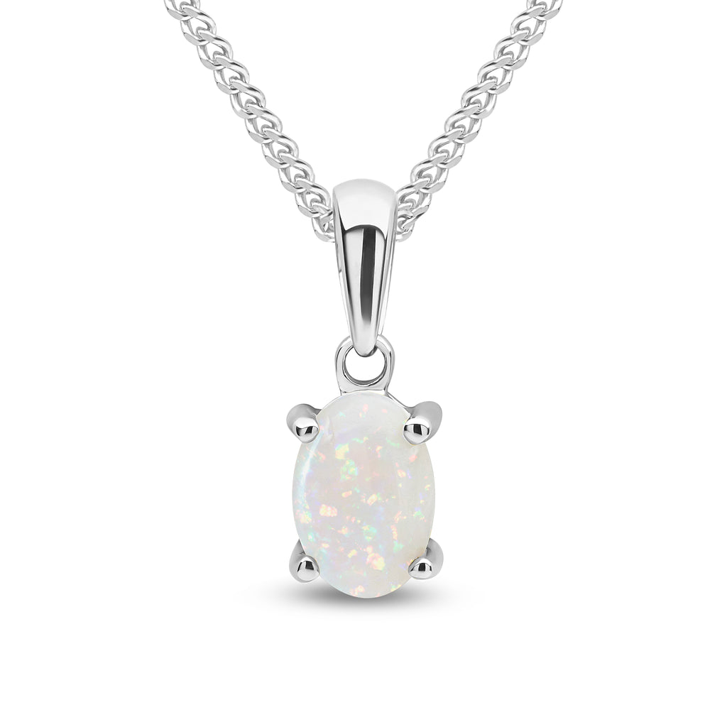 9CT White Gold Oval Opal Claw Pendant 6x4mm
