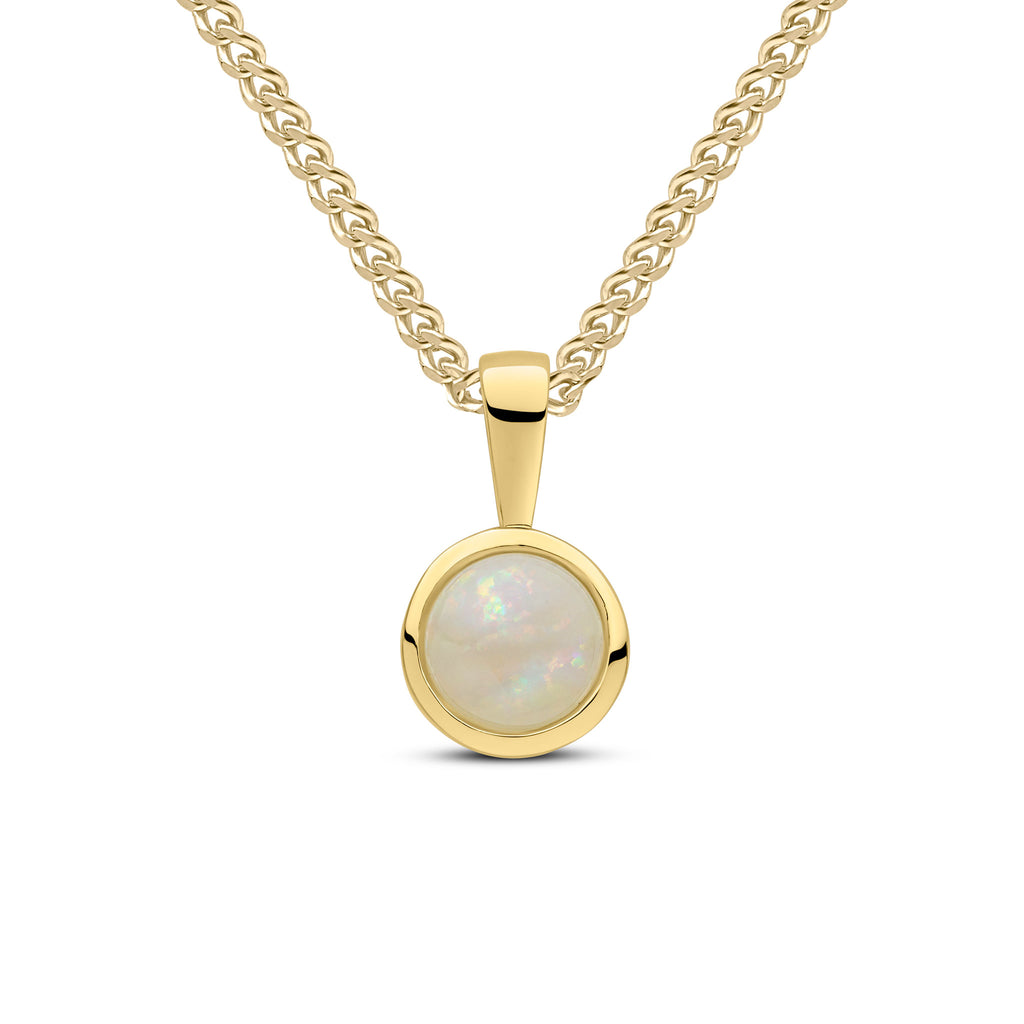9CT Yellow Gold Round Opal Rubover Pendant 6mm