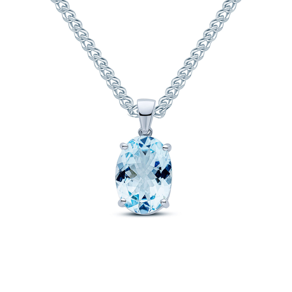9CT White Gold Oval Aquamarine Claw Pendant 14x10mm