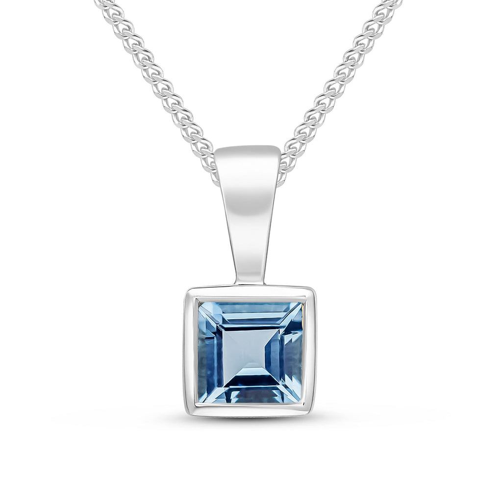 9CT White Gold Square Aquamarine Rubover Pendant 4mm