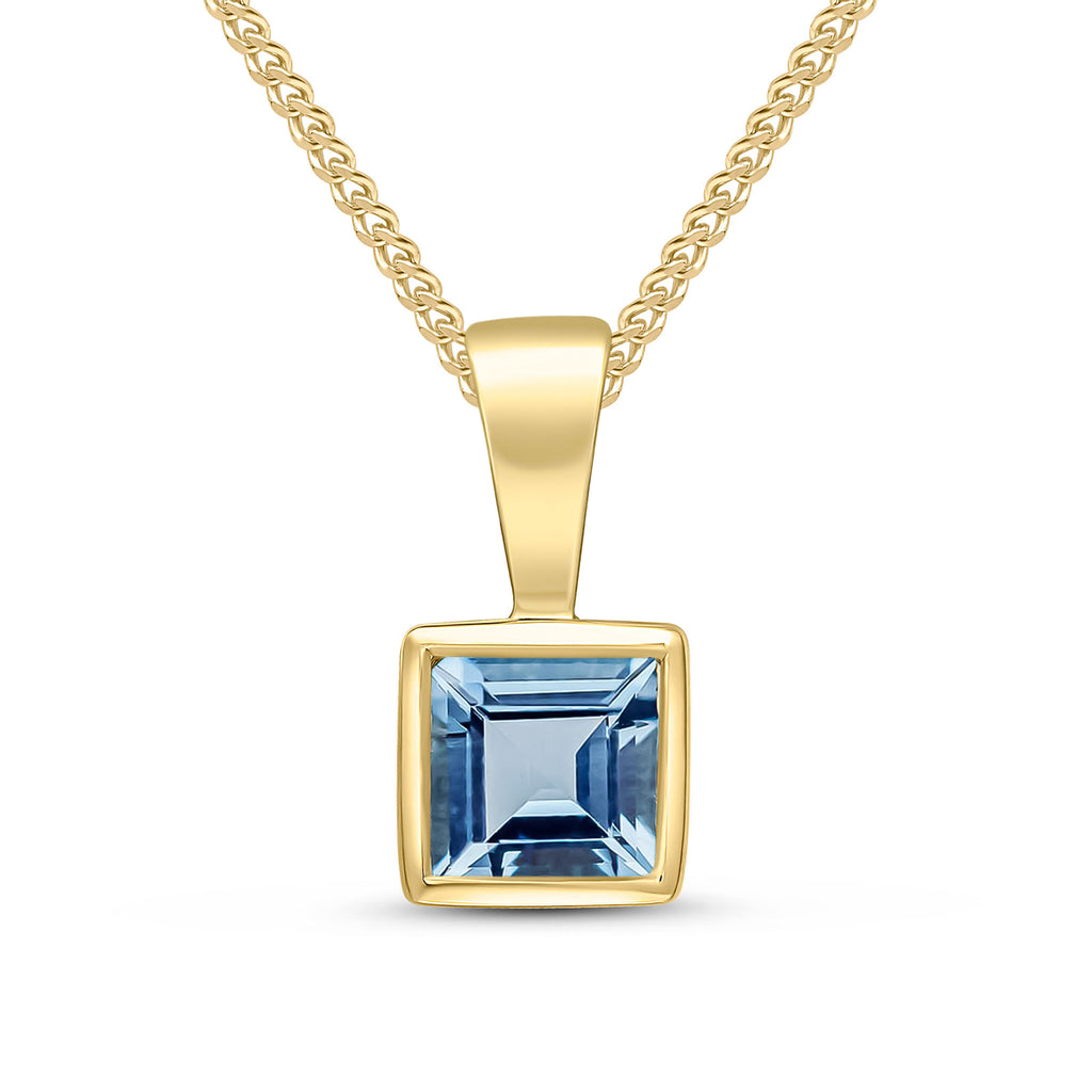 9CT Yellow Gold Square Aquamarine Rubover Pendant 4mm