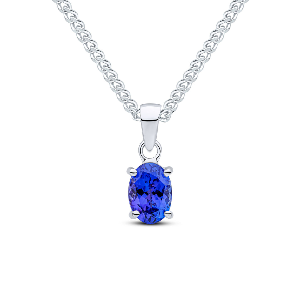 9CT White Gold Oval Tanzanite Claw Pendant 7x5mm