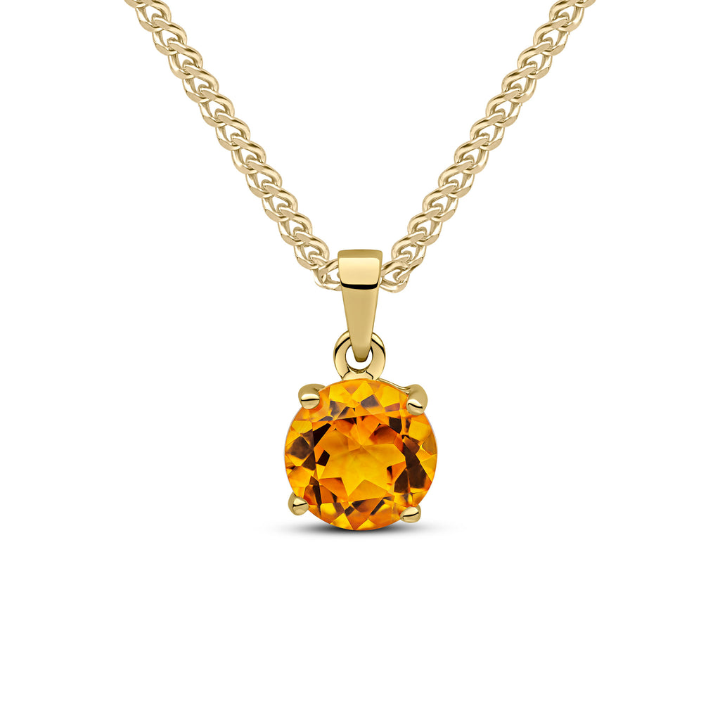 9CT Yellow Gold Round Citrine Claw Pendant 8mm