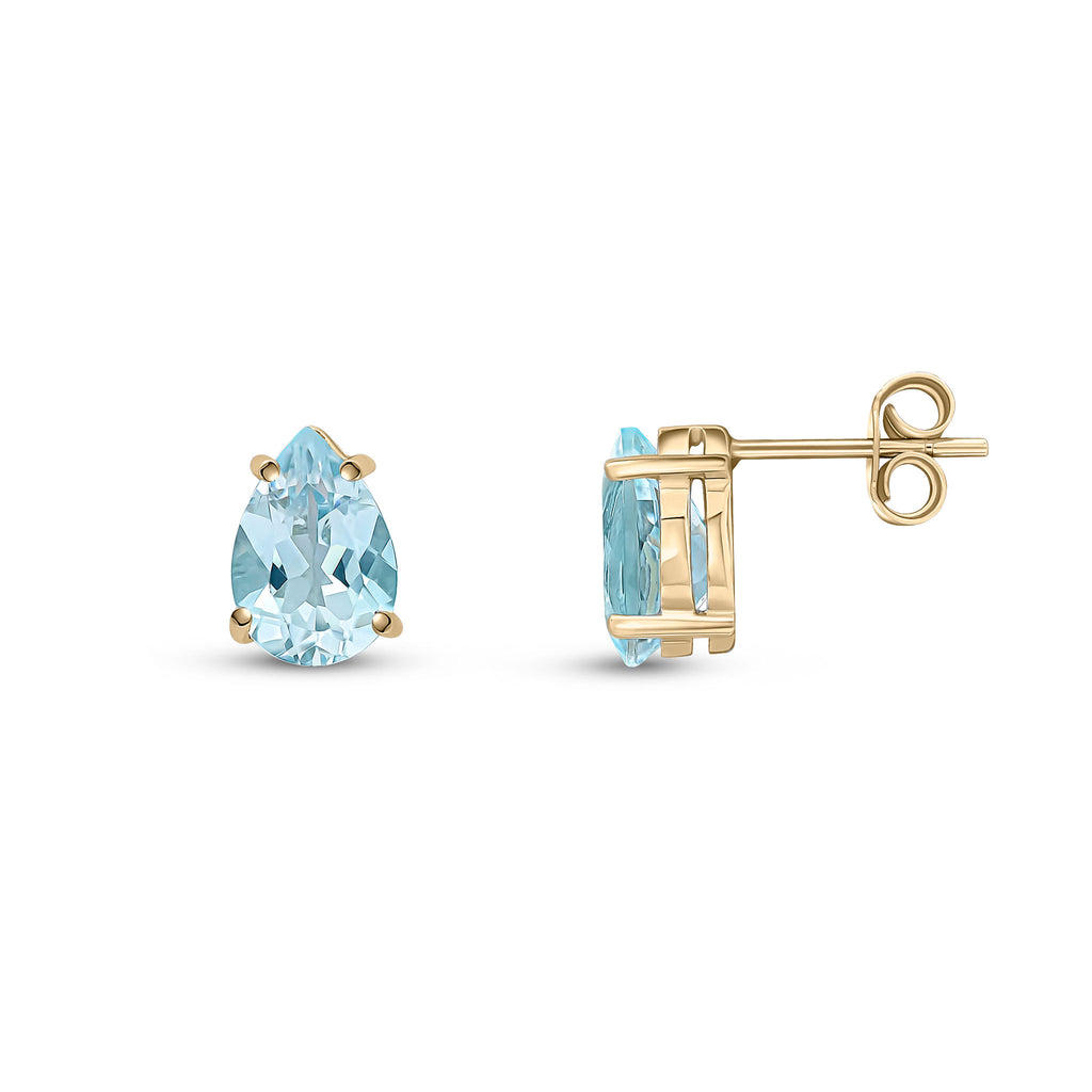 9CT Yellow Gold Pear Shaped Aquamarine Claw Stud Earrings 9x6mm
