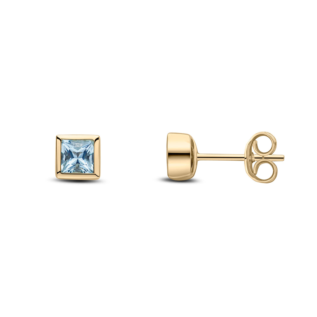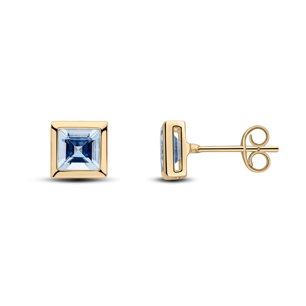9CT Yellow Gold Square Aquamarine Rubover Stud Earrings 5mm