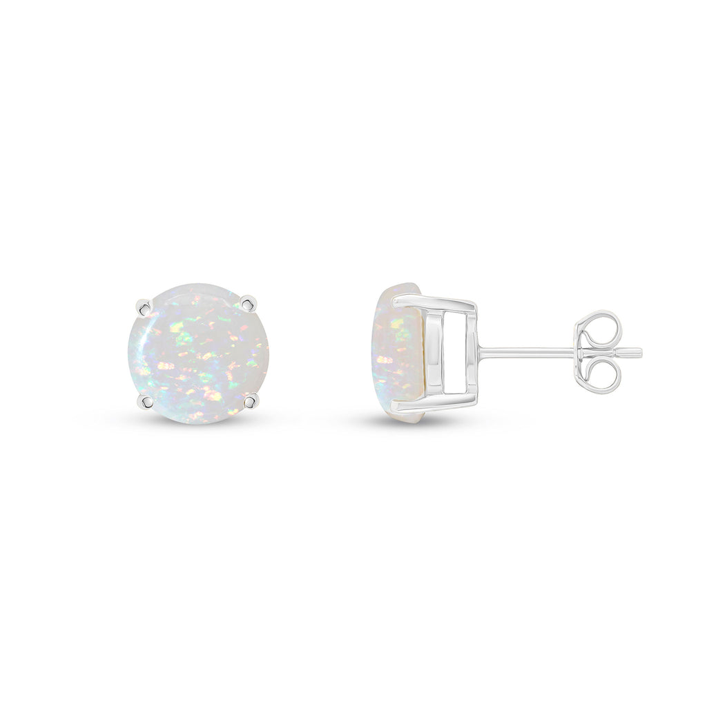 9CT White Gold Round Opal Claw Stud Earrings 8mm