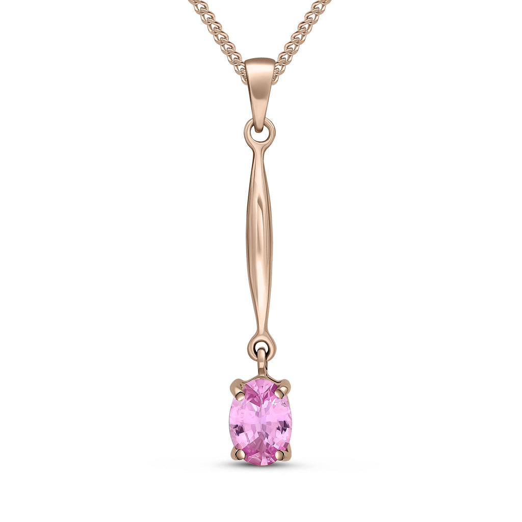 9CT Rose Gold Oval Pink Sapphire Claw Bar Drop Pendant 7x5mm