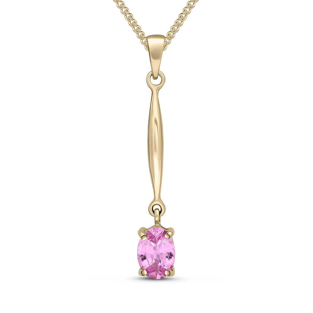 9CT Yellow Gold Oval Pink Sapphire Claw Bar Drop Pendant 7x5mm
