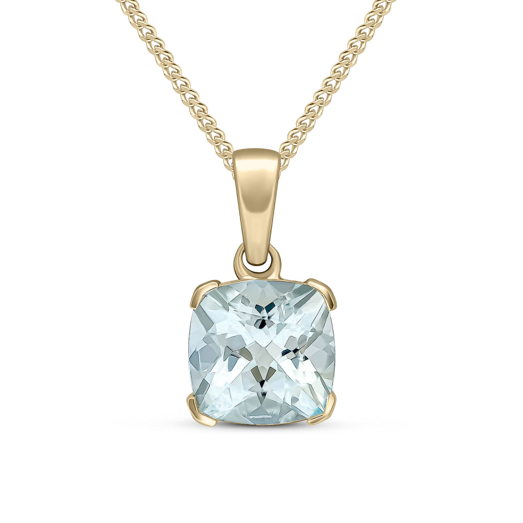 9CT Yellow Gold Cushion Aquamarine Claw Pendant 8mm