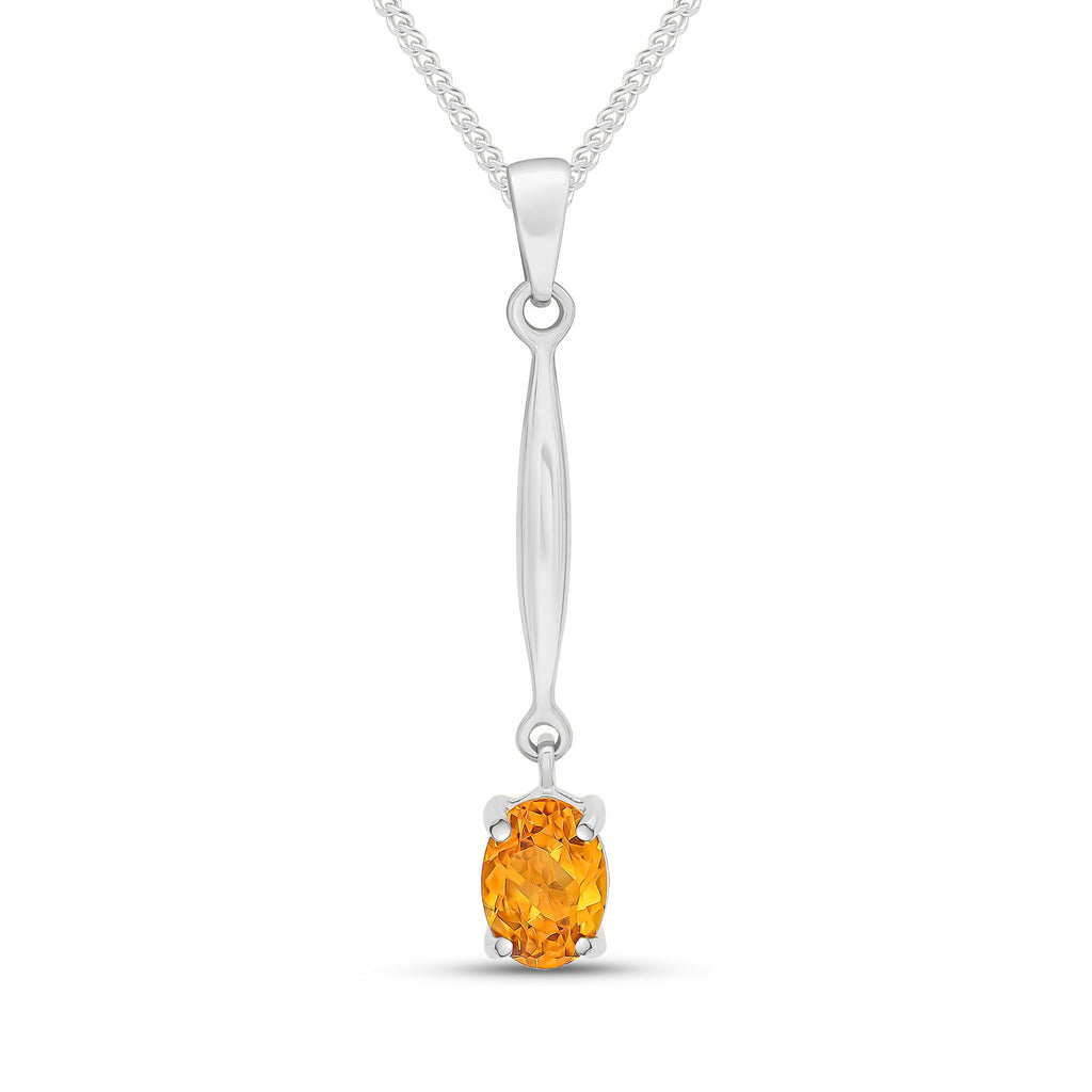 9CT White Gold Oval Citrine Claw Bar Drop Pendant 7x5mm