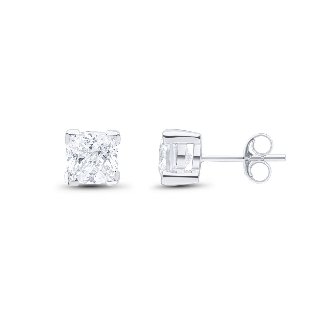 9CT White Gold Cushion Cubic Zirconia CZ Claw Stud Earrings 6mm