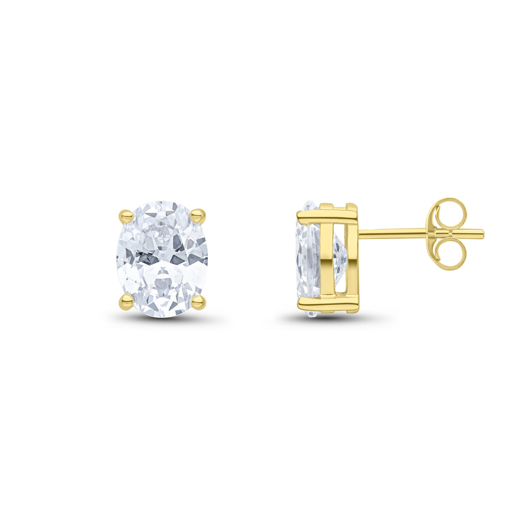 9CT Yellow Gold Oval Cubic Zirconia CZ Claw Stud Earrings 9x7mm