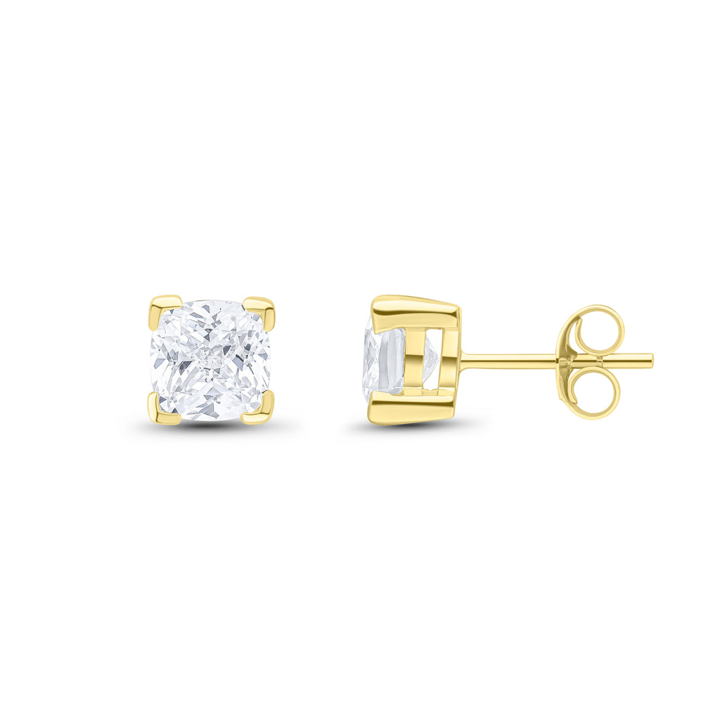 9CT Yellow Gold Cushion Cubic Zirconia CZ Claw Stud Earrings 6mm