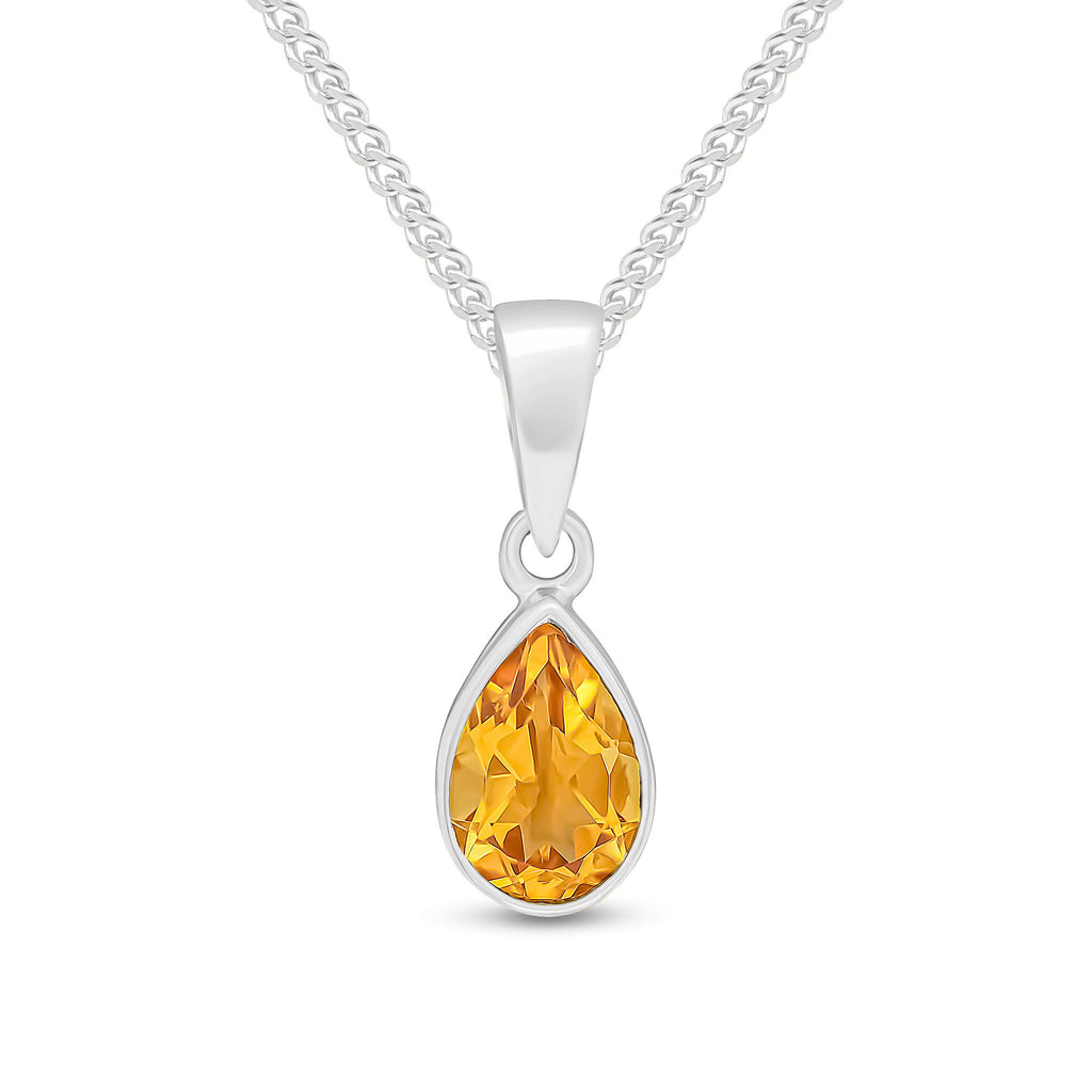 9CT White Gold Pear Shaped Citrine Rubover Pendant 7x5mm