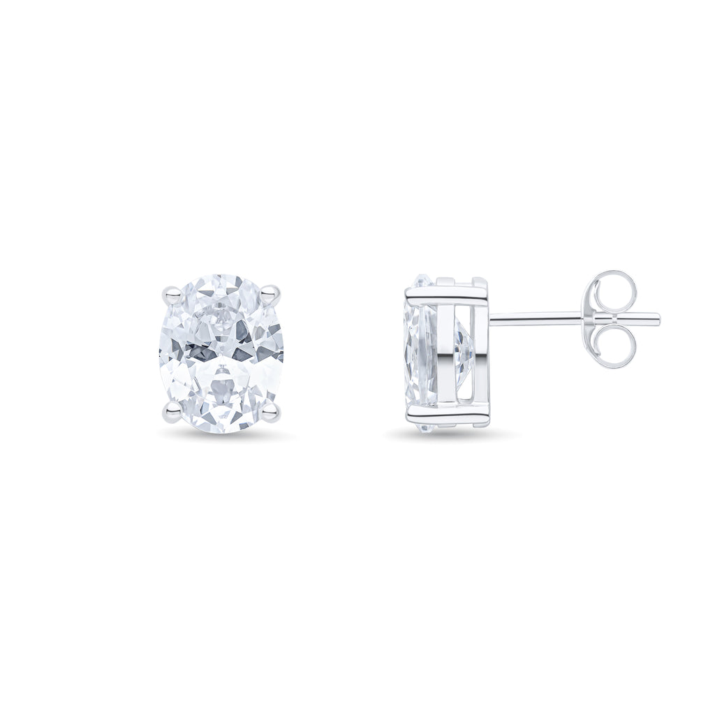9CT White Gold Oval Cubic Zirconia CZ Claw Stud Earrings 9x7mm
