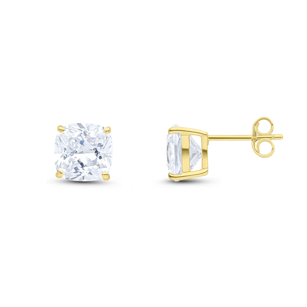 9CT Yellow Gold Cushion Cubic Zirconia CZ Claw Stud Earrings 8mm