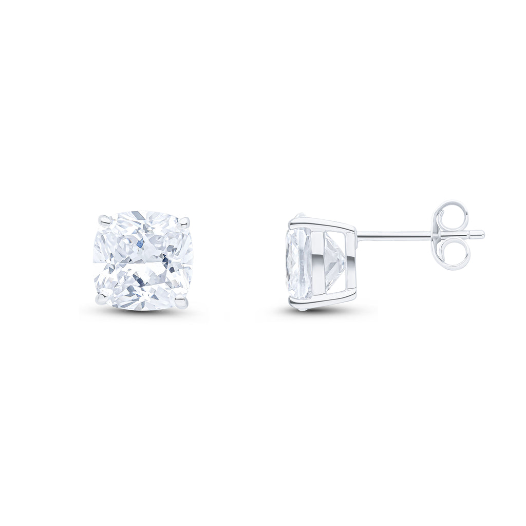 9CT White Gold Cushion Cubic Zirconia CZ Claw Stud Earrings 8mm