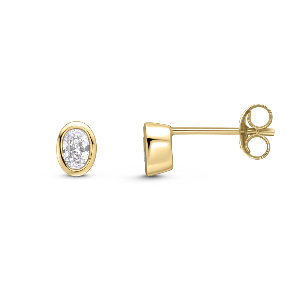 9CT Yellow Gold Oval Cubic Zirconia CZ Rubover Stud Earrings 4x3mm