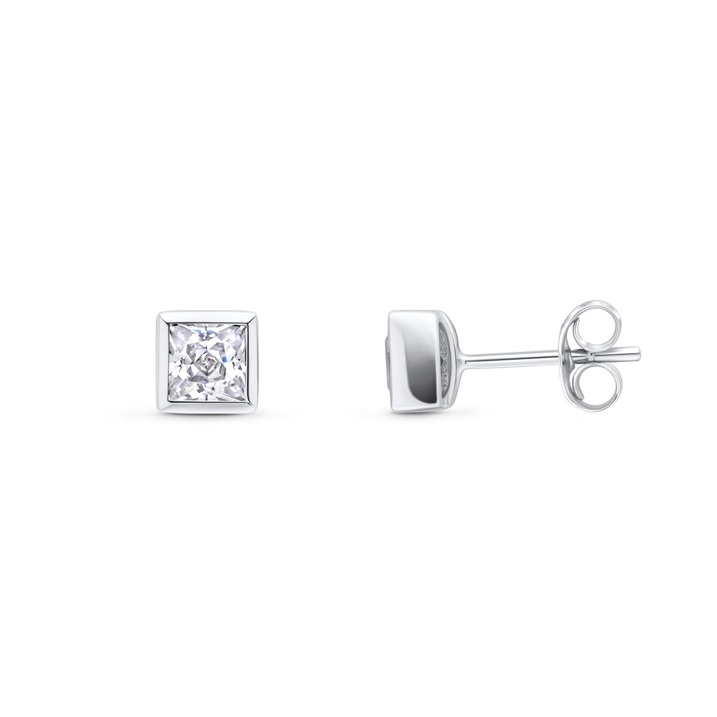 9CT White Gold Square Cubic Zirconia CZ Rubover Stud Earrings 3mm