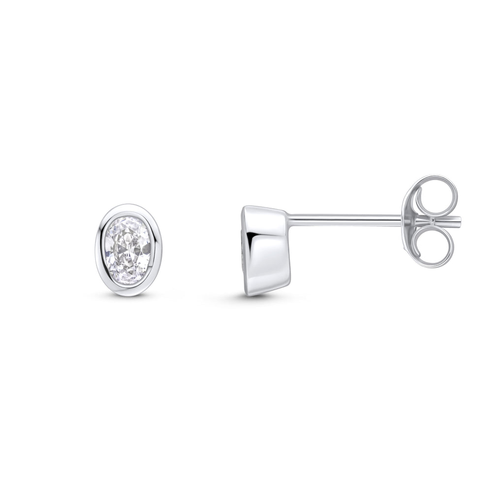 9CT White Gold Oval Cubic Zirconia CZ Rubover Stud Earrings 4x3mm