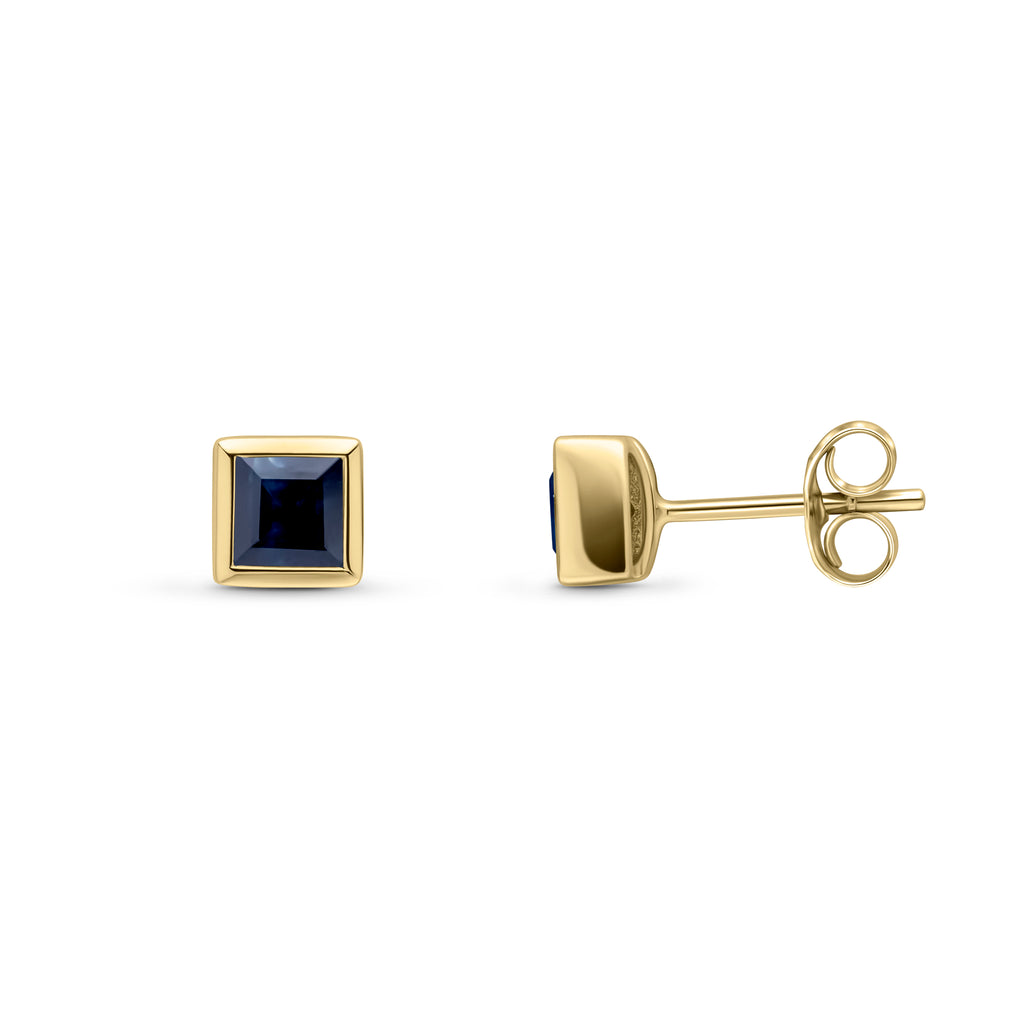 9CT Yellow Gold Square Sapphire Rubover Stud Earrings 4mm