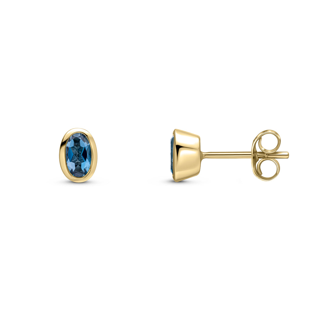 9CT Yellow Gold Oval London Blue Topaz Rubover Stud Earrings 5x3mm