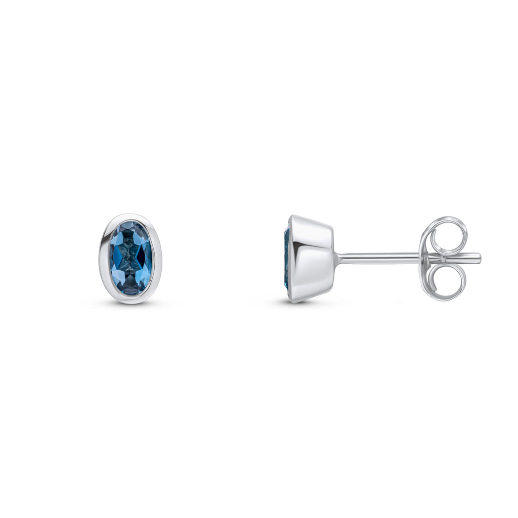 9CT White Gold Oval London Blue Topaz Rubover Stud Earrings 5x3mm