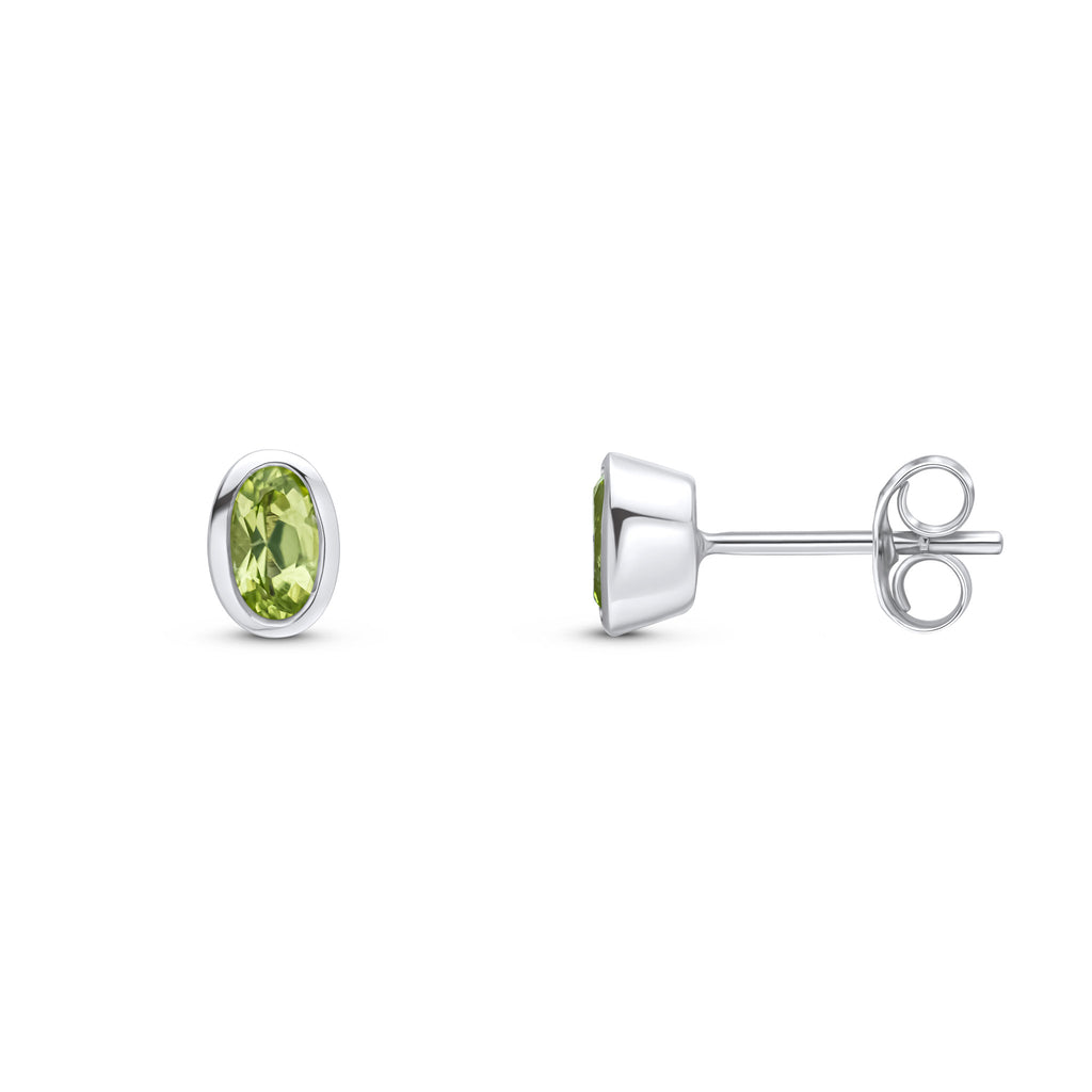 9CT White Gold Oval Peridot Rubover Stud Earrings 5x3mm
