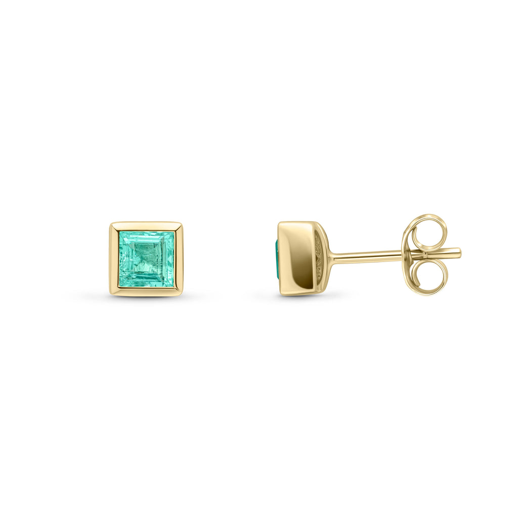 9CT Yellow Gold Square Emerald Rubover Stud Earrings 4mm