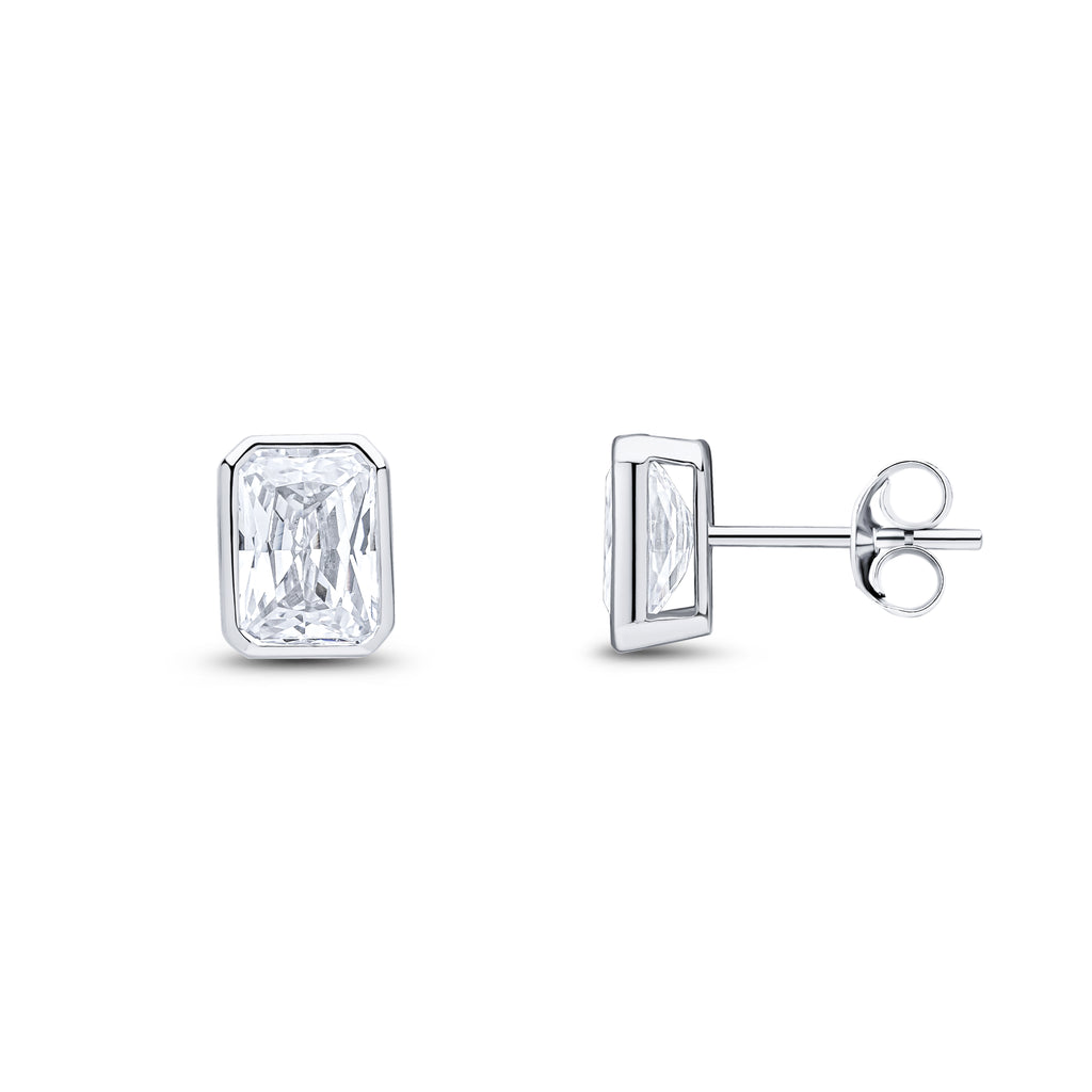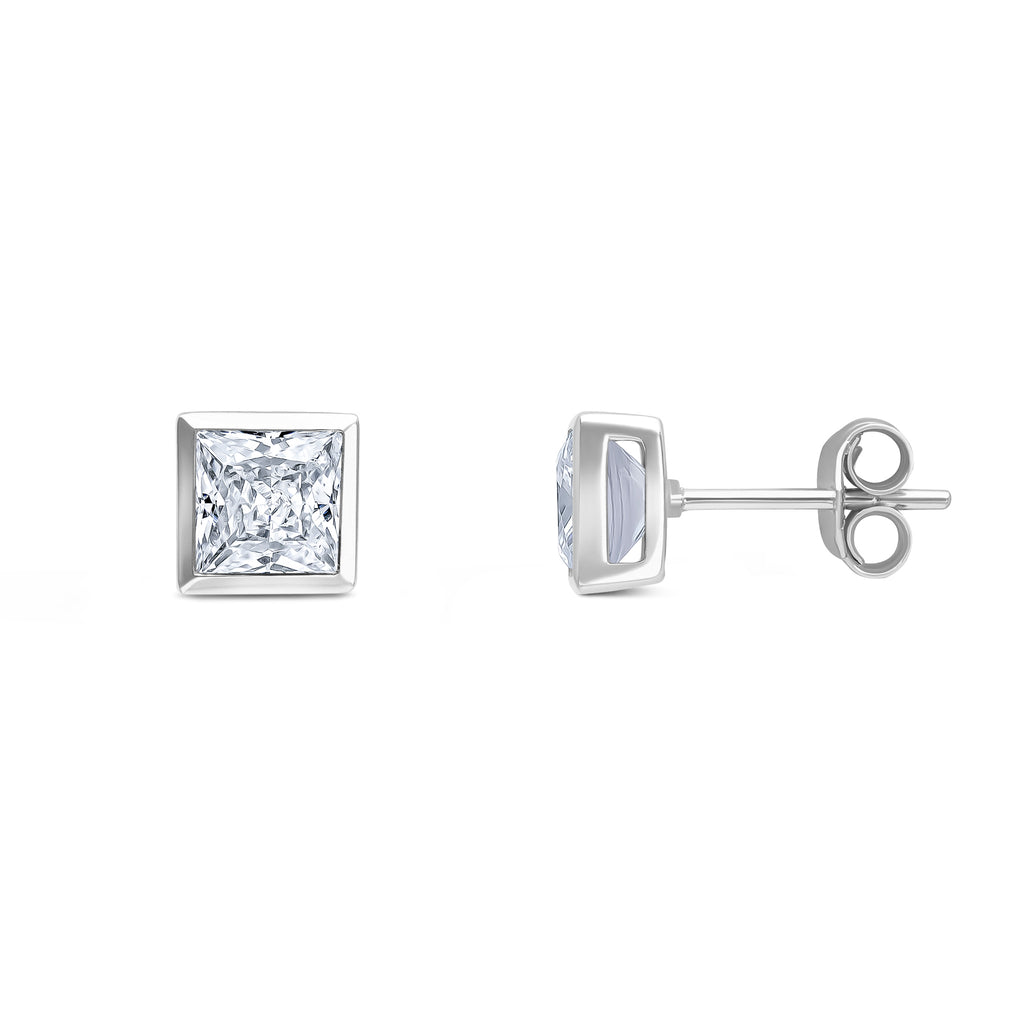 9CT White Gold Square Cubic Zirconia CZ Rubover Stud Earrings 5mm