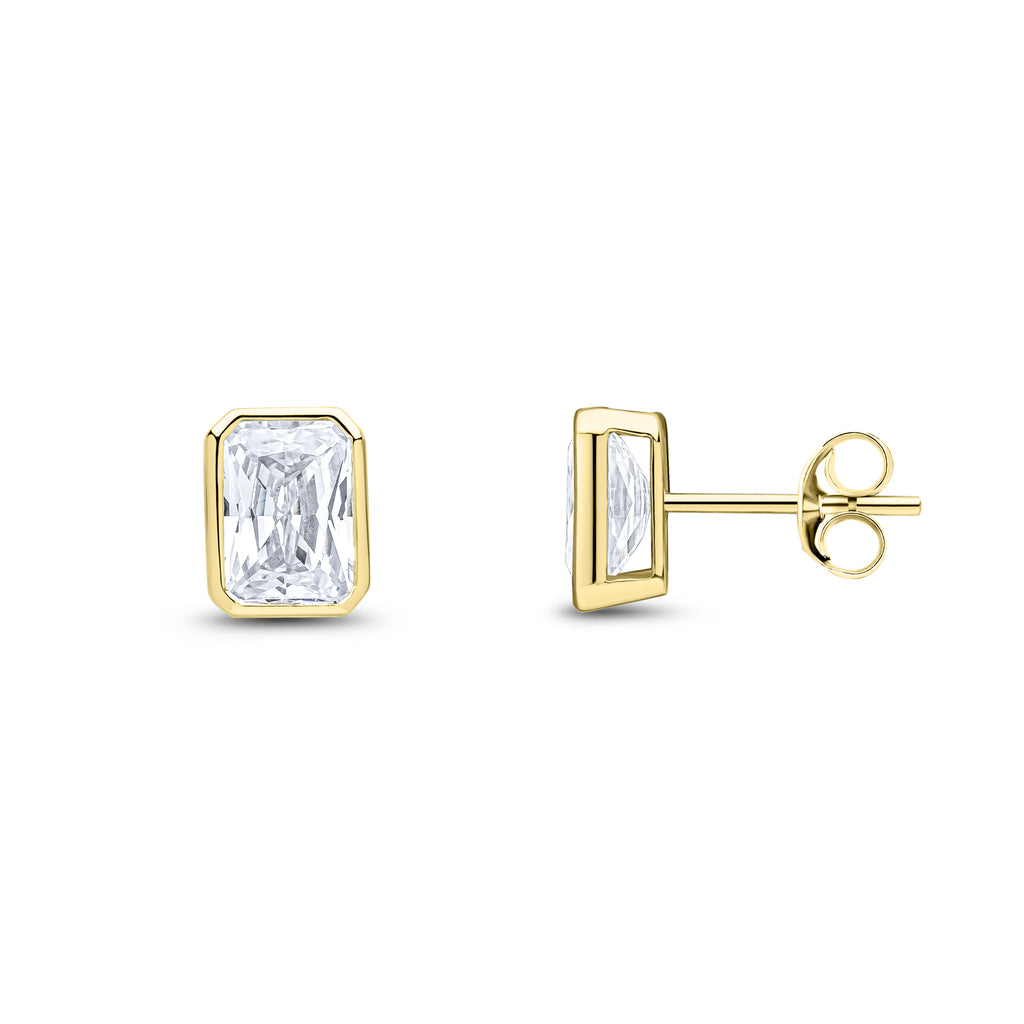 9CT Yellow Gold Octagonal CZ Cubic Zirconia Rubover Stud Earrings 7x5mm