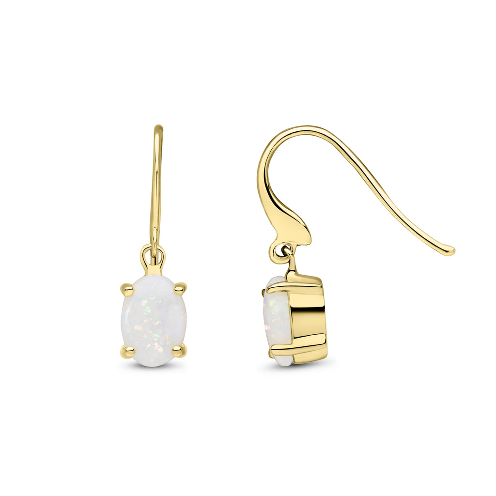 9CT Yellow Gold Oval Opal Claw Hook Wire Drop Earrings 7x5mm