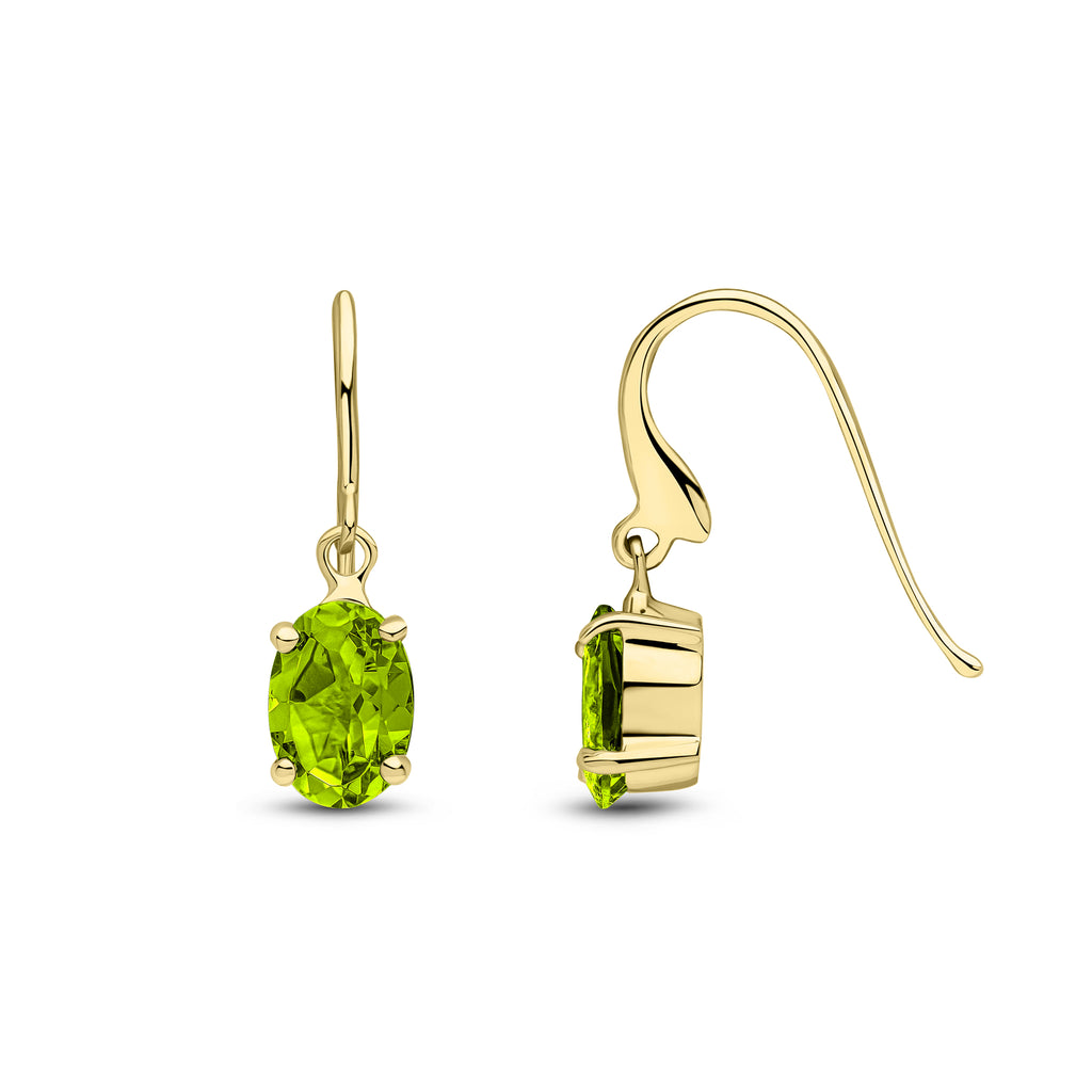 9CT Yellow Gold Oval Shaped Peridot Claw Hook Drop Earrings 7x5mm