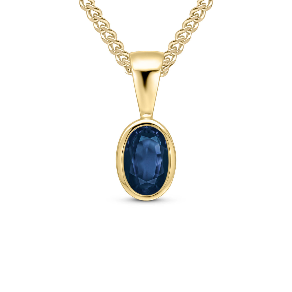 9CT Yellow Gold Oval Sapphire Rubover Pendant 6x4mm