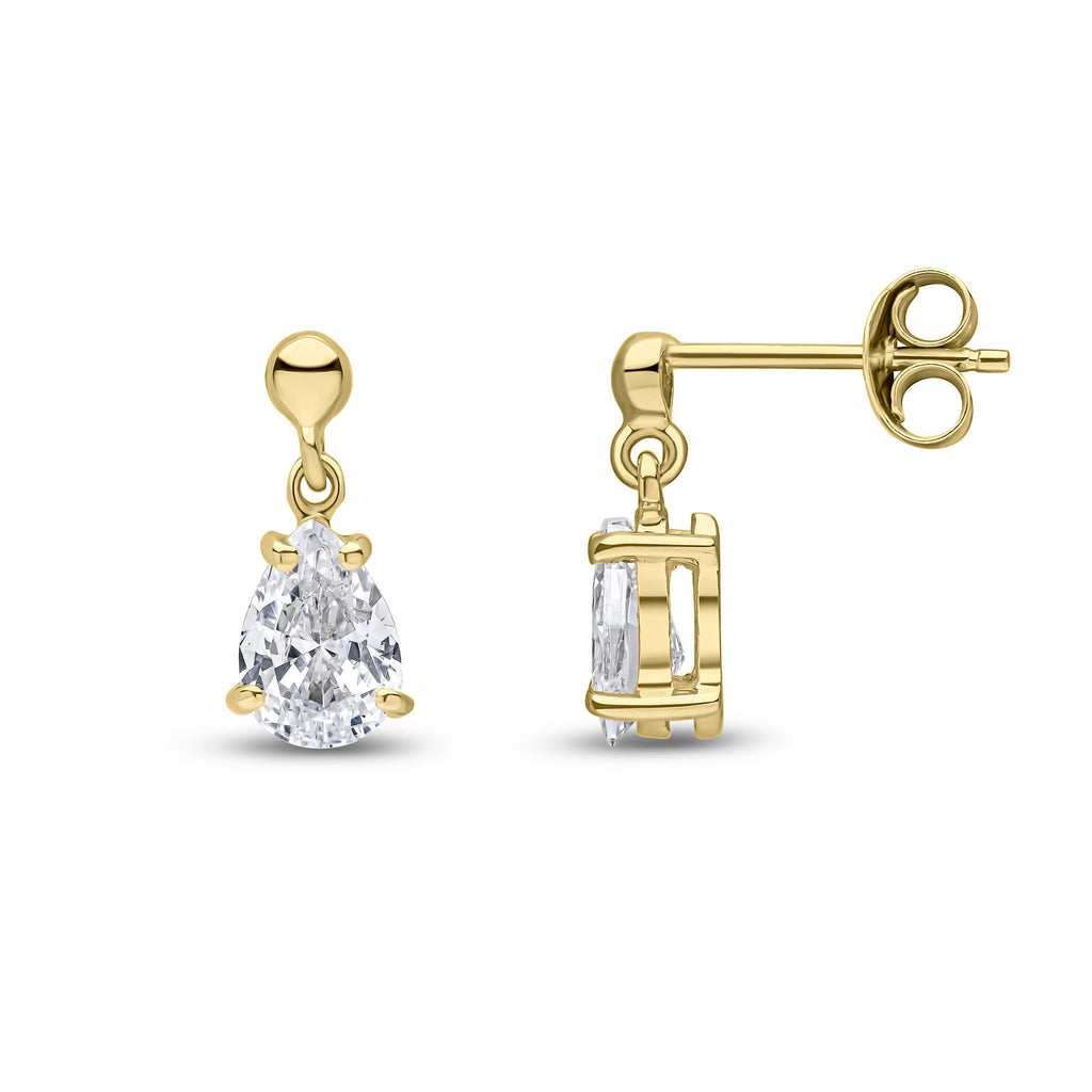 9CT Yellow Gold Pear Shaped Shaped Cubic Zirconia CZ Drop Earrings 7x5mm