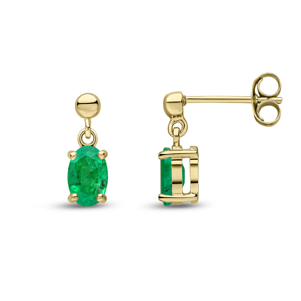 9CT Yellow Gold Oval Emerald Claw Drop Earrings with Bead Top 6x4mm
