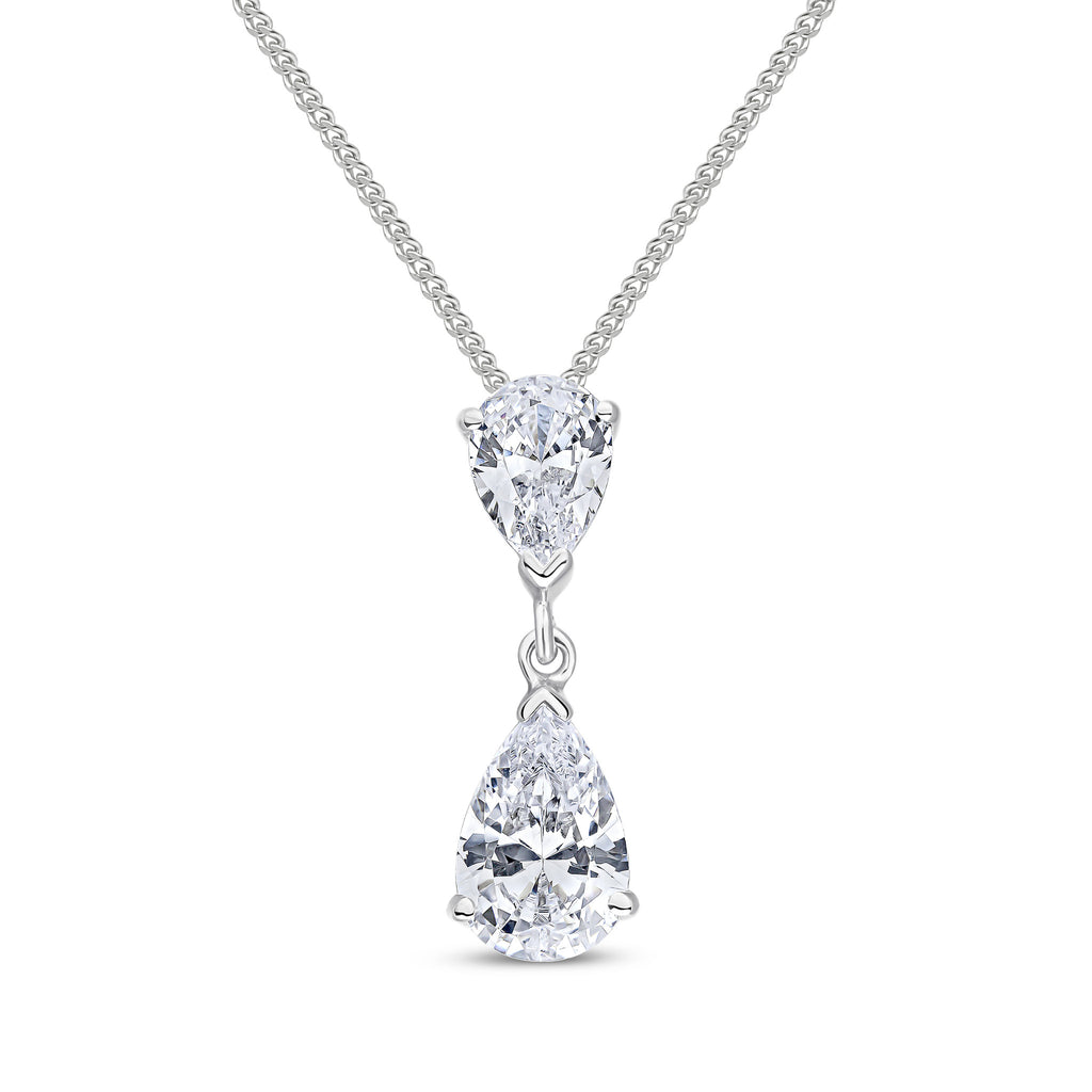 9CT White Gold Pear Shaped Cubic Zirconia CZ Claw Two Stone Pendant