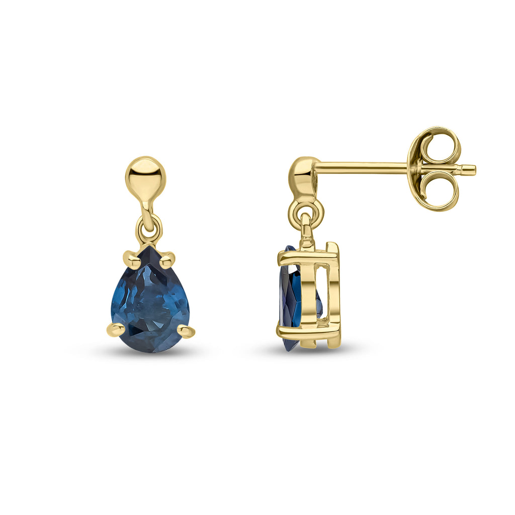 9CT Yellow Gold Pear Shaped Shaped Sapphire Drop Earrings 7x5mm