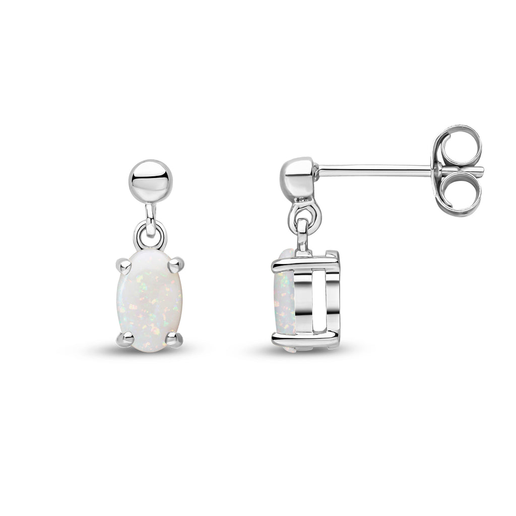 9CT White Gold Oval Opal Drop Earrings 6x4mm