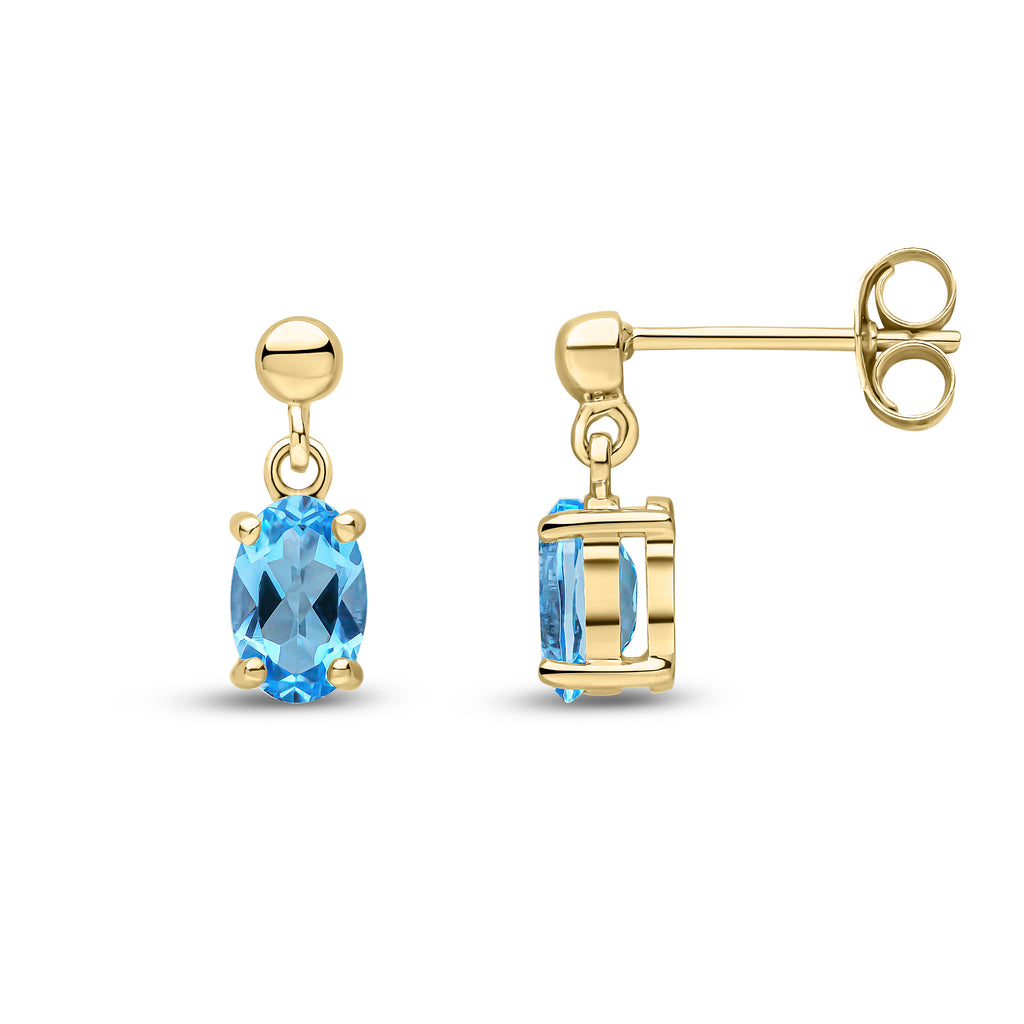9CT Yellow Gold Oval Swiss Blue Topaz Claw Drop Earrings 6x4mm